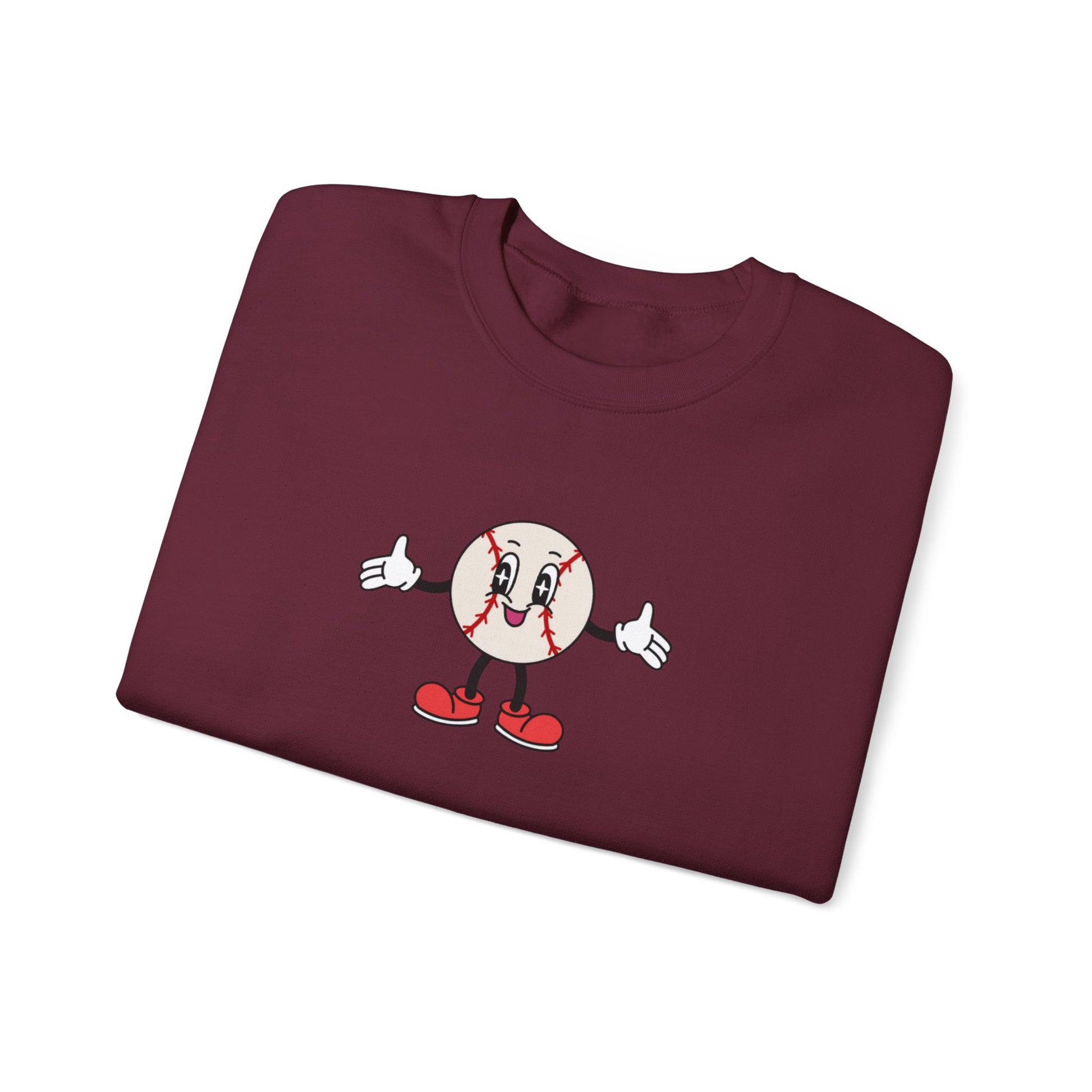 Cute Cartoon Baseball Crewneck Sweatshirt – Thumbs Up Mascot Graphic