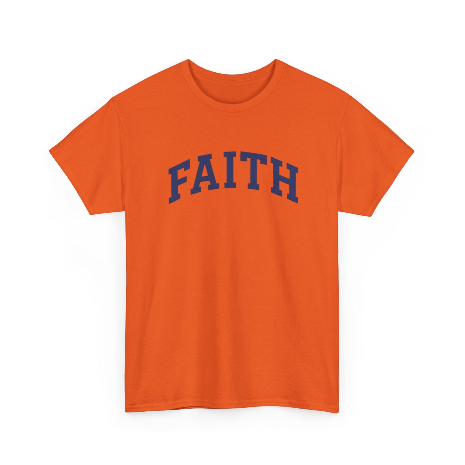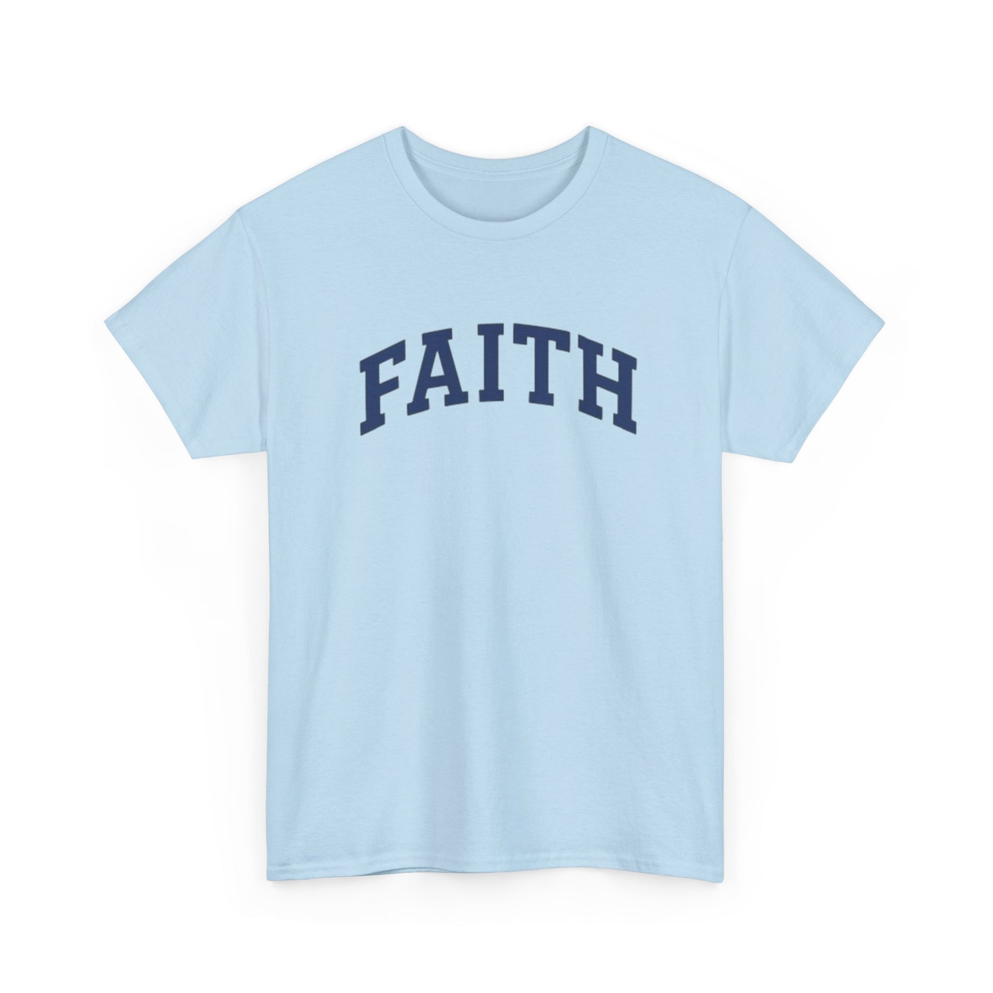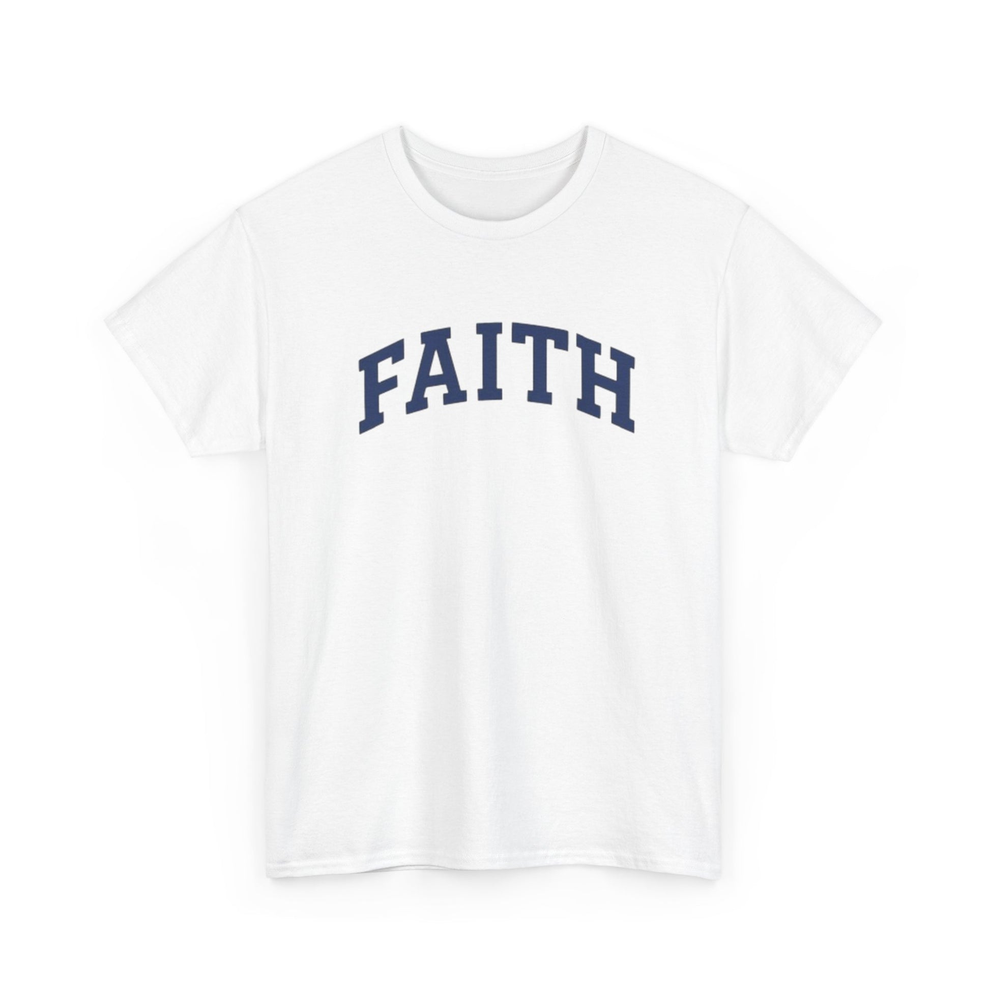 Faith Graphic Tee — Simple Navy Arch Lettering Christian T‑Shirt