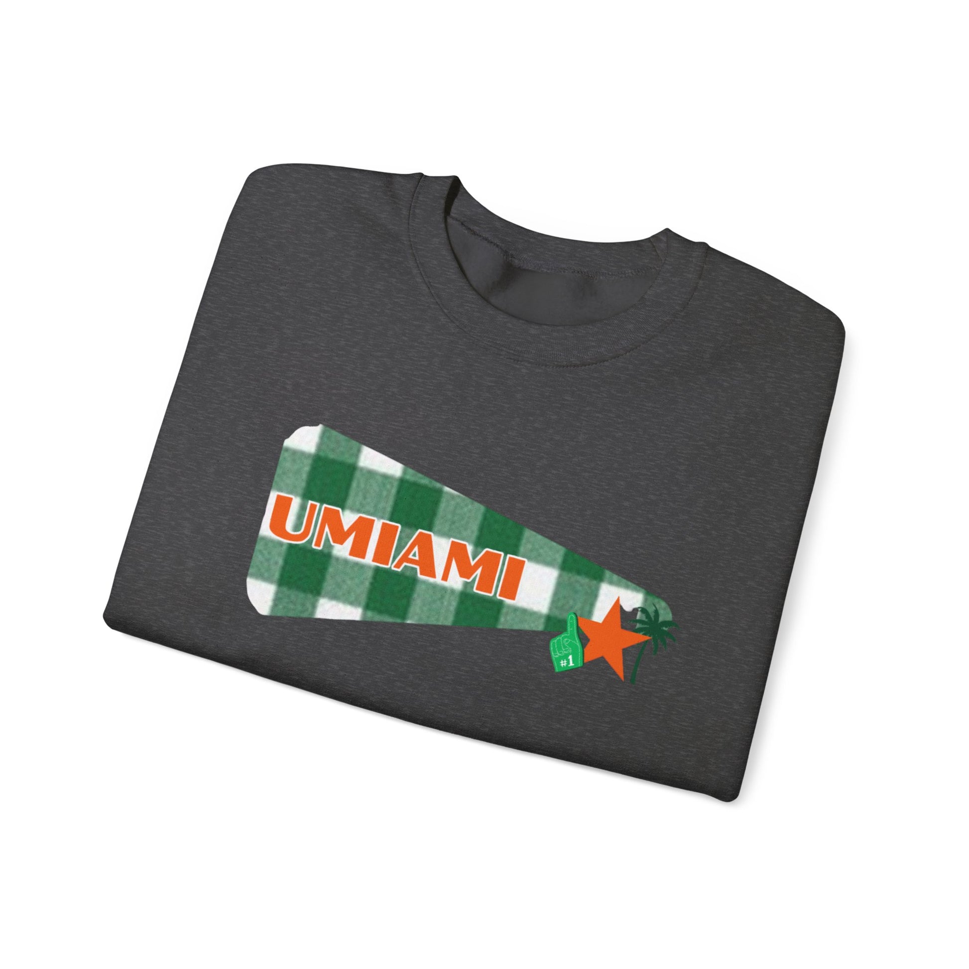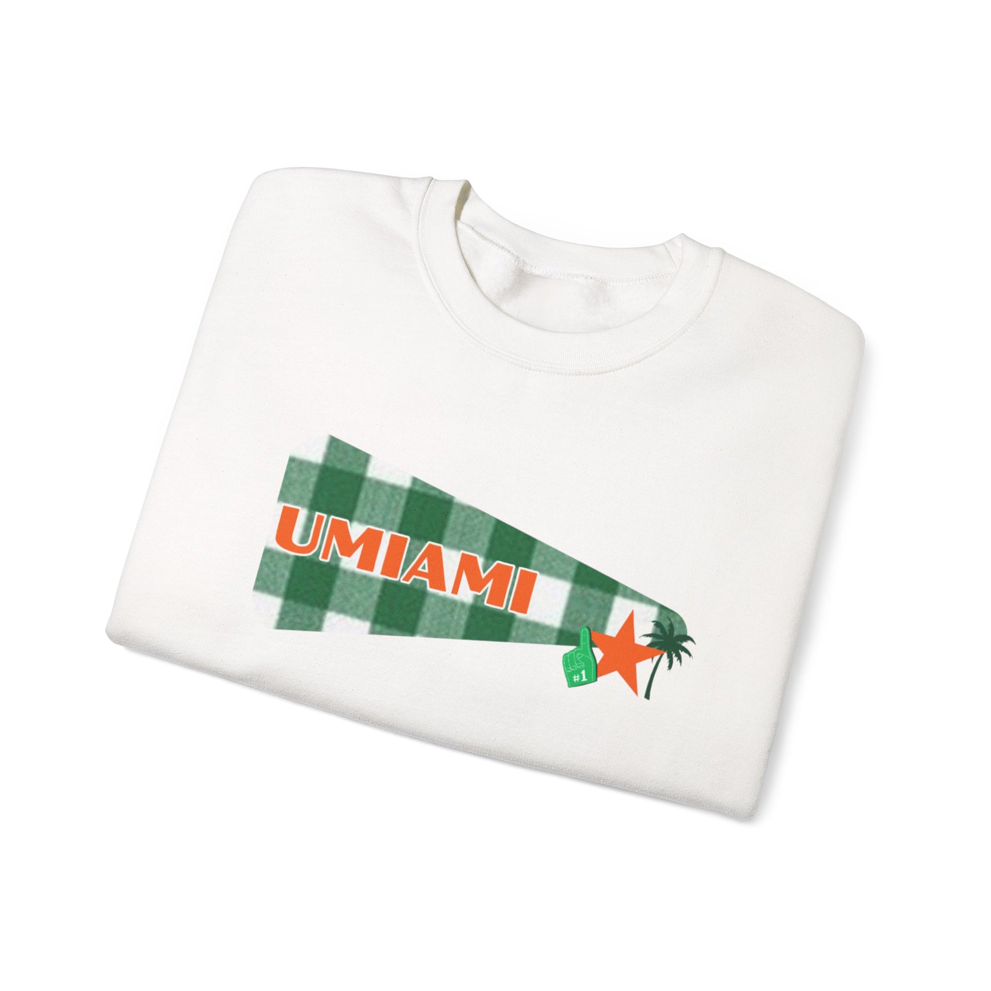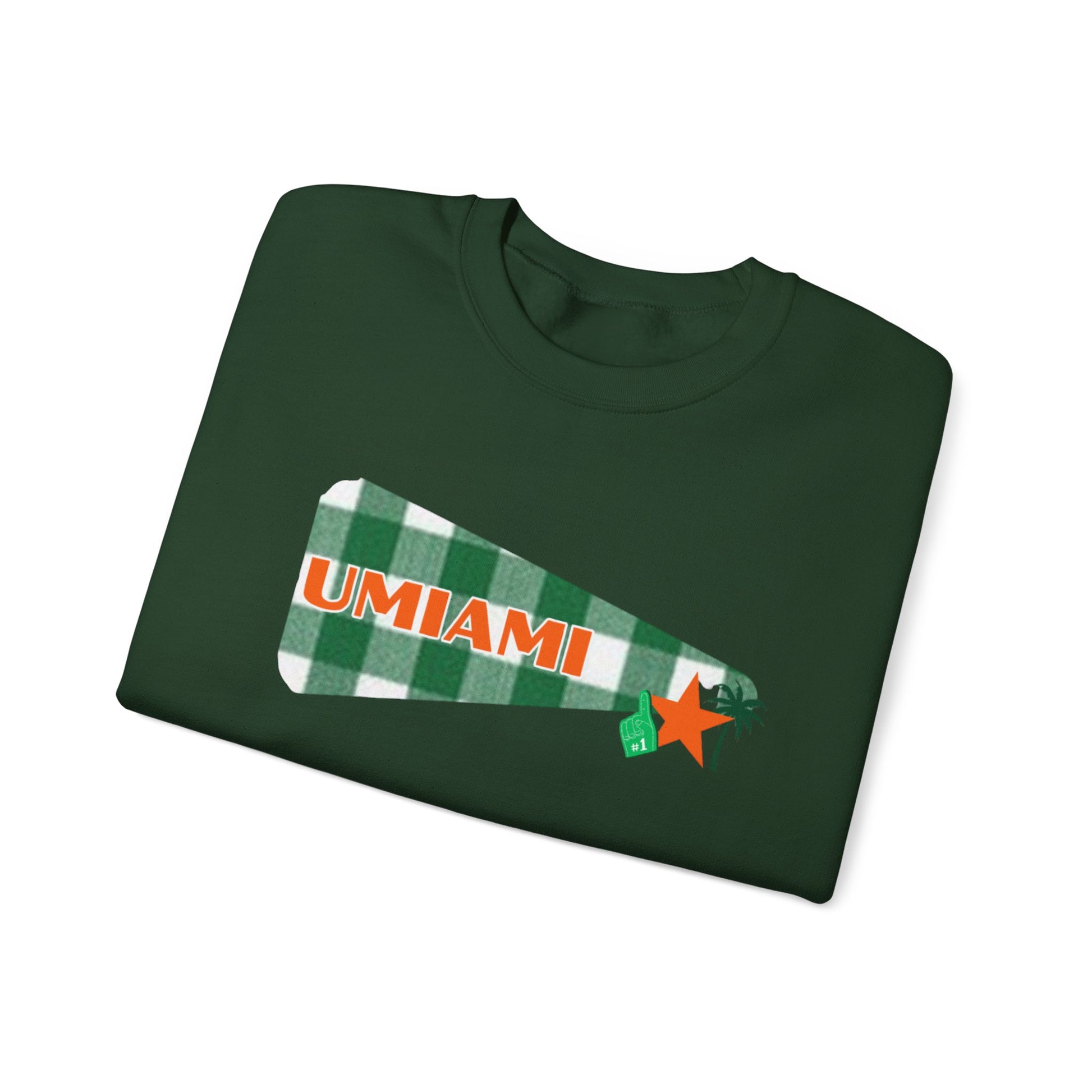 University Pennant Crewneck Sweatshirt – "UMIAMI" Green Plaid Vintage Pennant Design